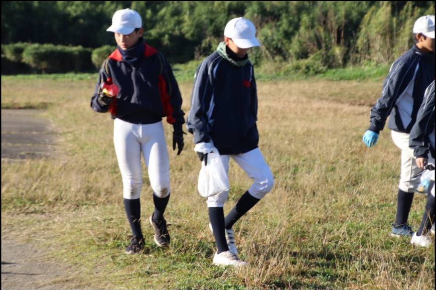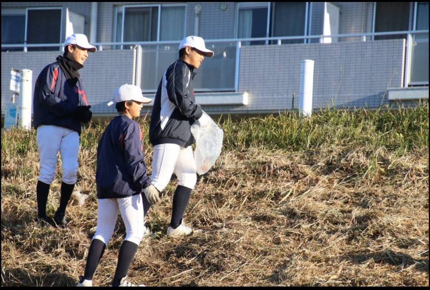 たくさんゴミを拾ってきれいな河川になり、その後は通常練習をがんばりました。