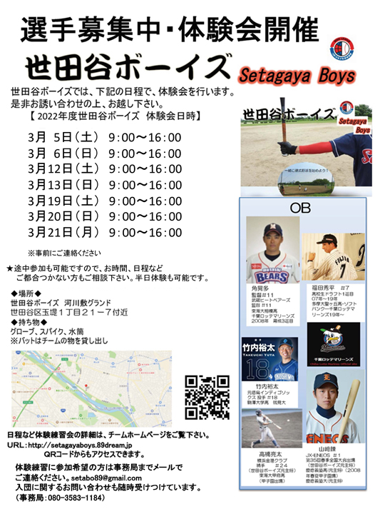 ホーム セタボ・レポート ニュース・お知らせ 体験会開催中! 入団決定した選手もいます!!
