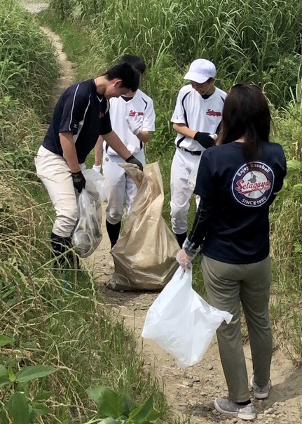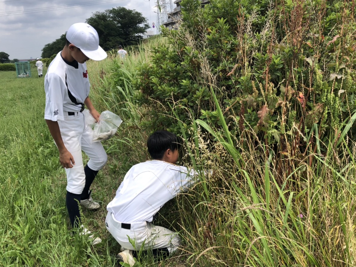 ボーイズリーグのボランティア活動として、練習グラウンド周辺のゴミ拾いを行いました。