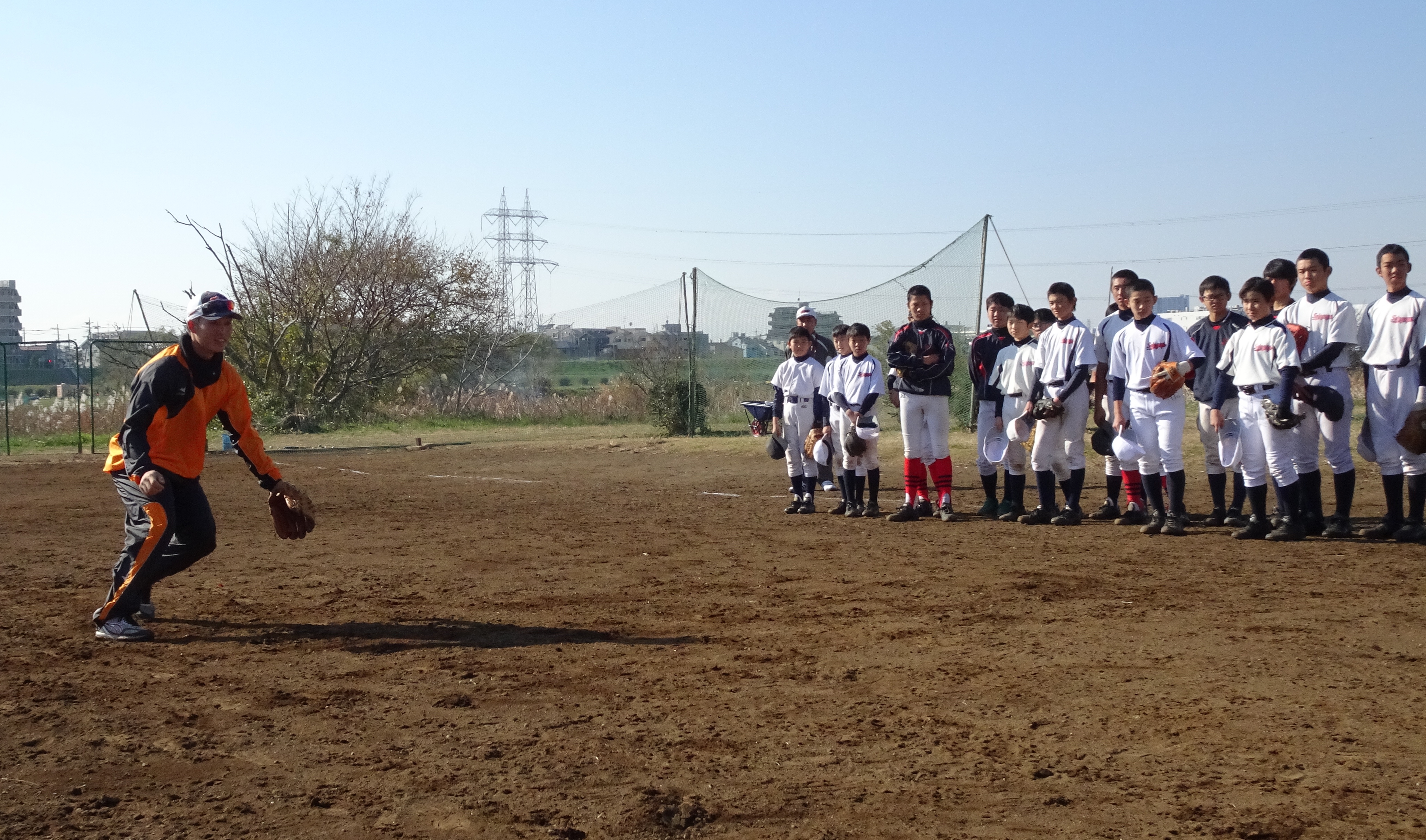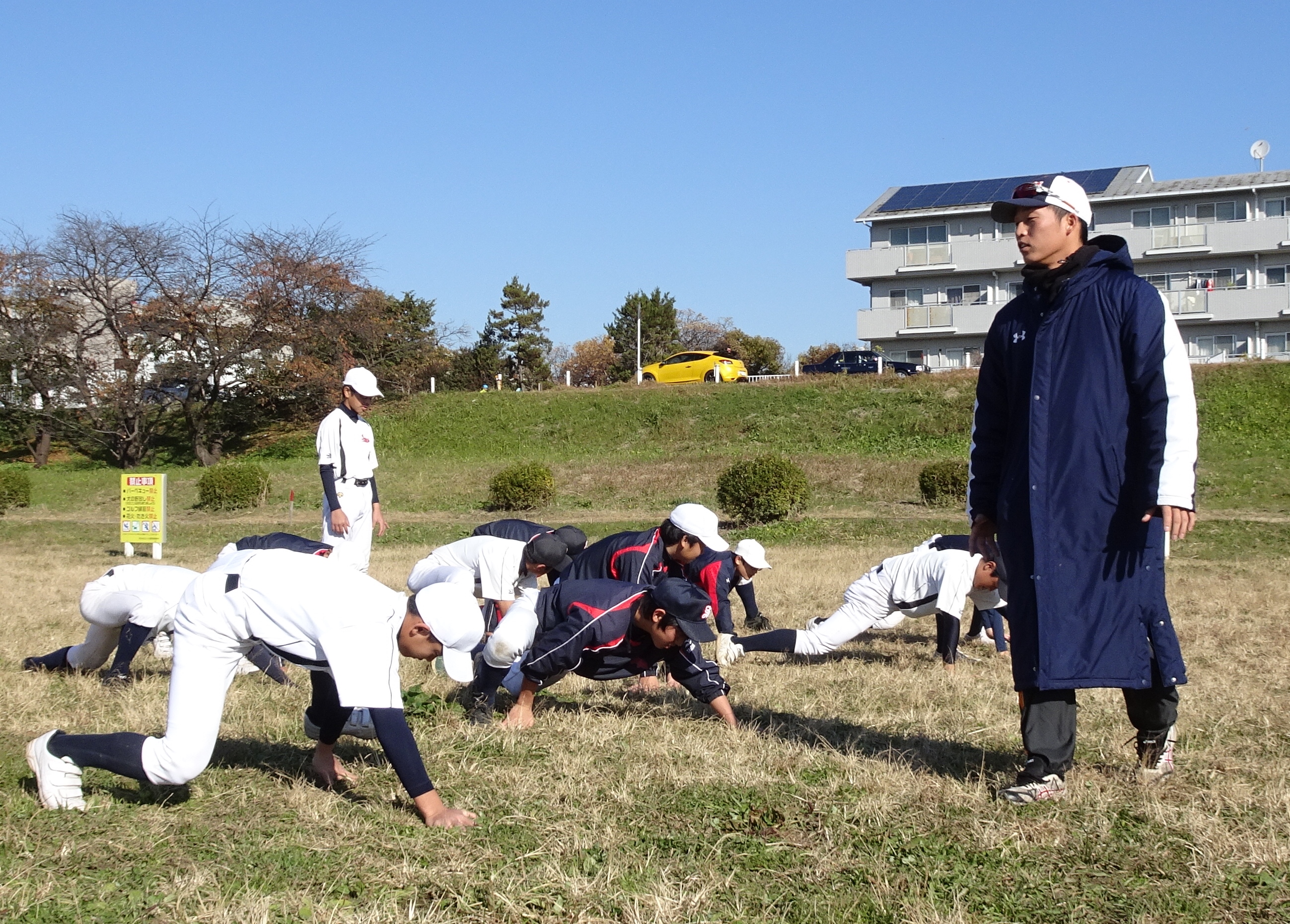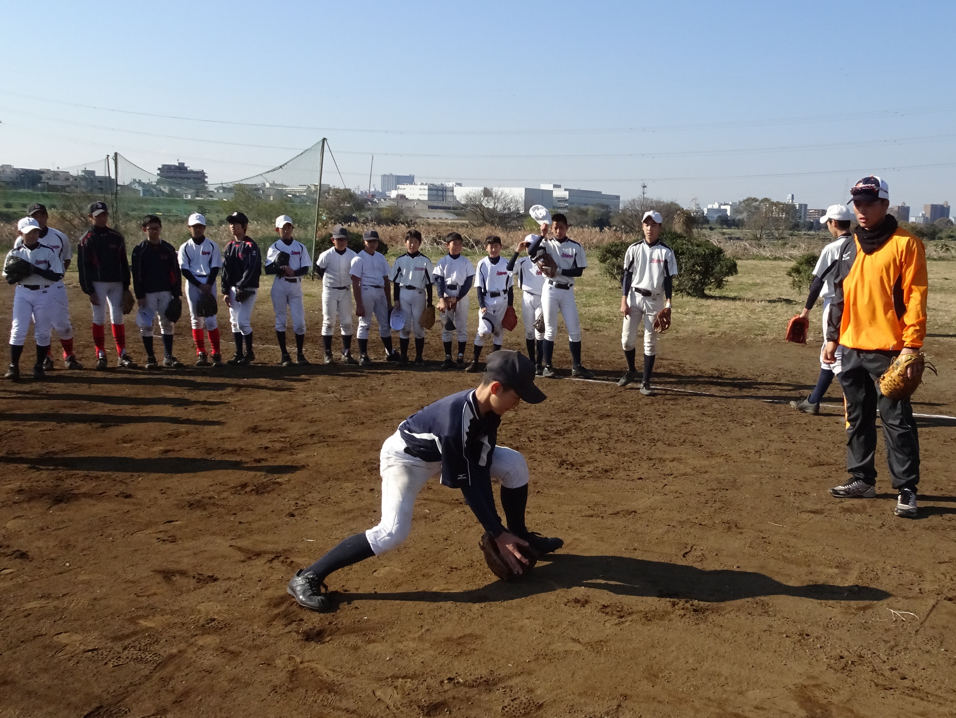 アップ、キャッチボール(ボールの捕り方と遠投)、ハンドリング、ペッパー、ゴロ捕り、ティー打撃……。選手たちは教わったことができるように練習しましょう。