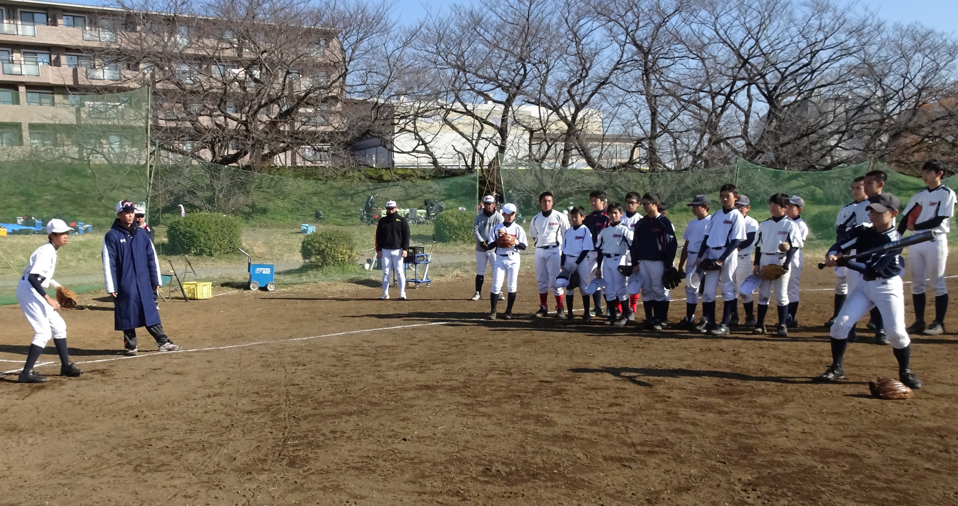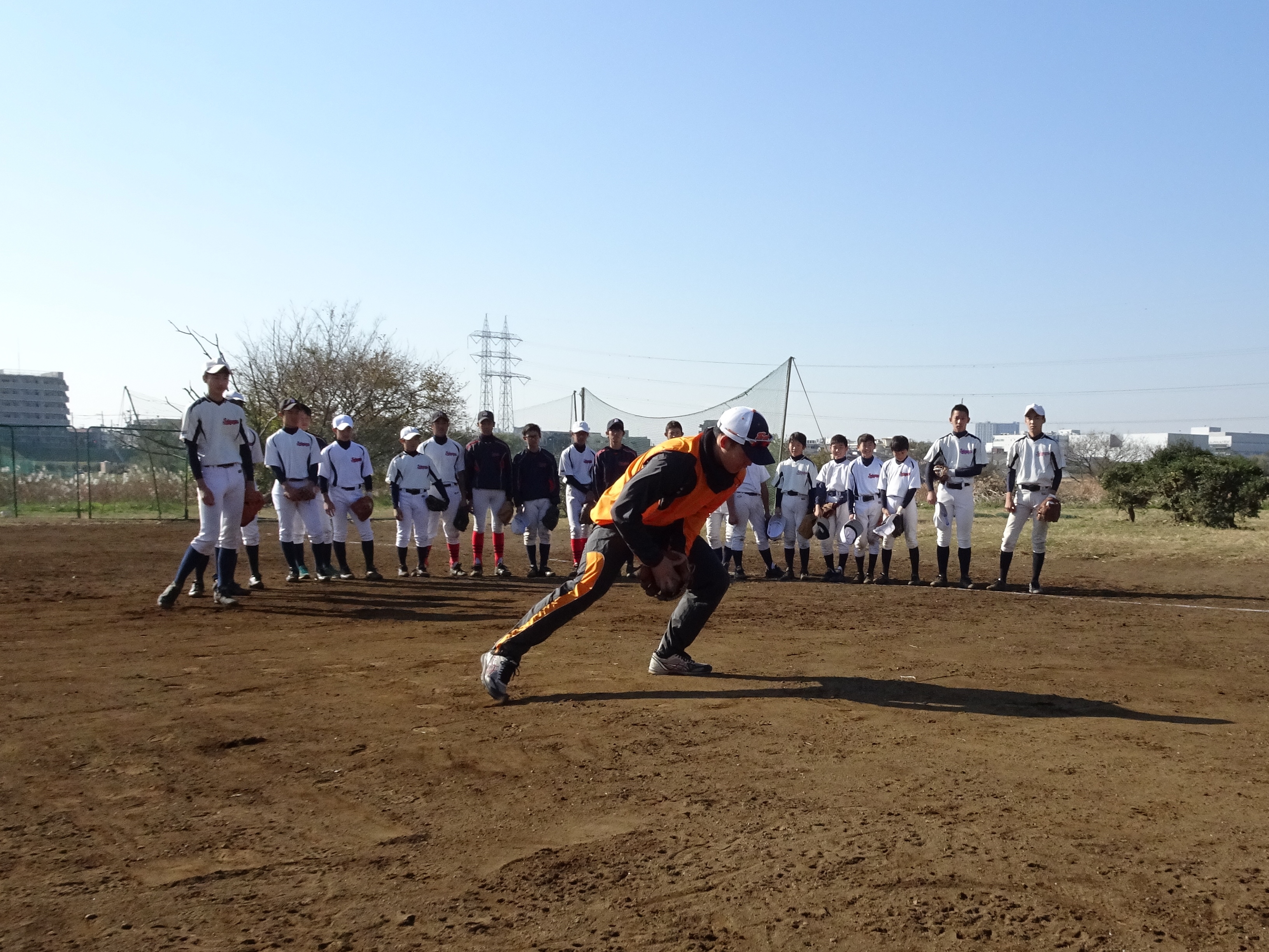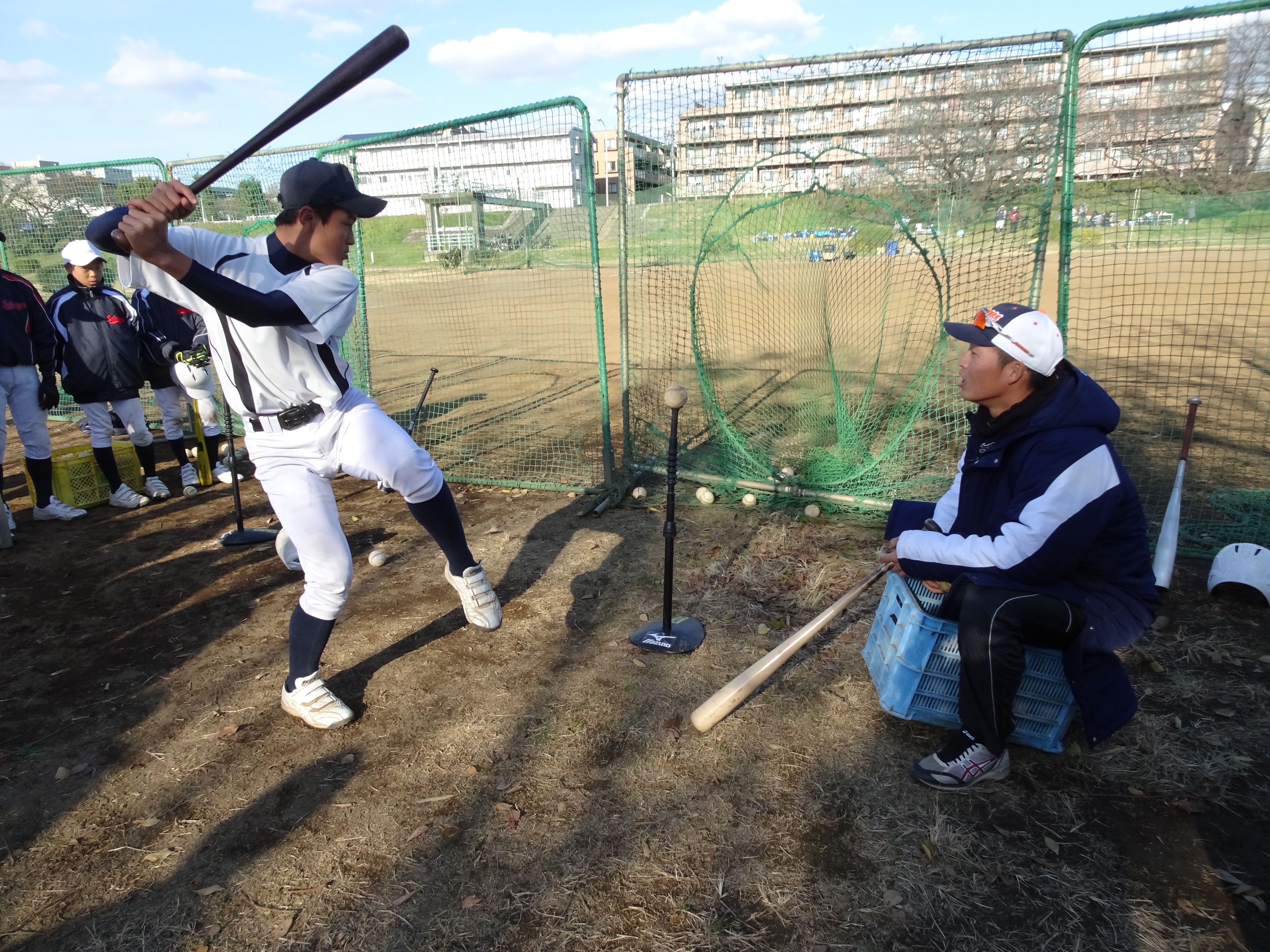 世田谷ボーイズ元主将で、社会人野球の強豪チーム「JX-ENEOS」の山崎錬主将(写真左)。慶応高校、慶応大学でも主将を務めました。キャプテンシーあふれるきめ細かい指導の数々。今の世田谷ボーイズの弱点を指摘しつつ、一人一人の技術力向上のため、またチーム力アップのため、たくさんのアドバイスをいただきました。