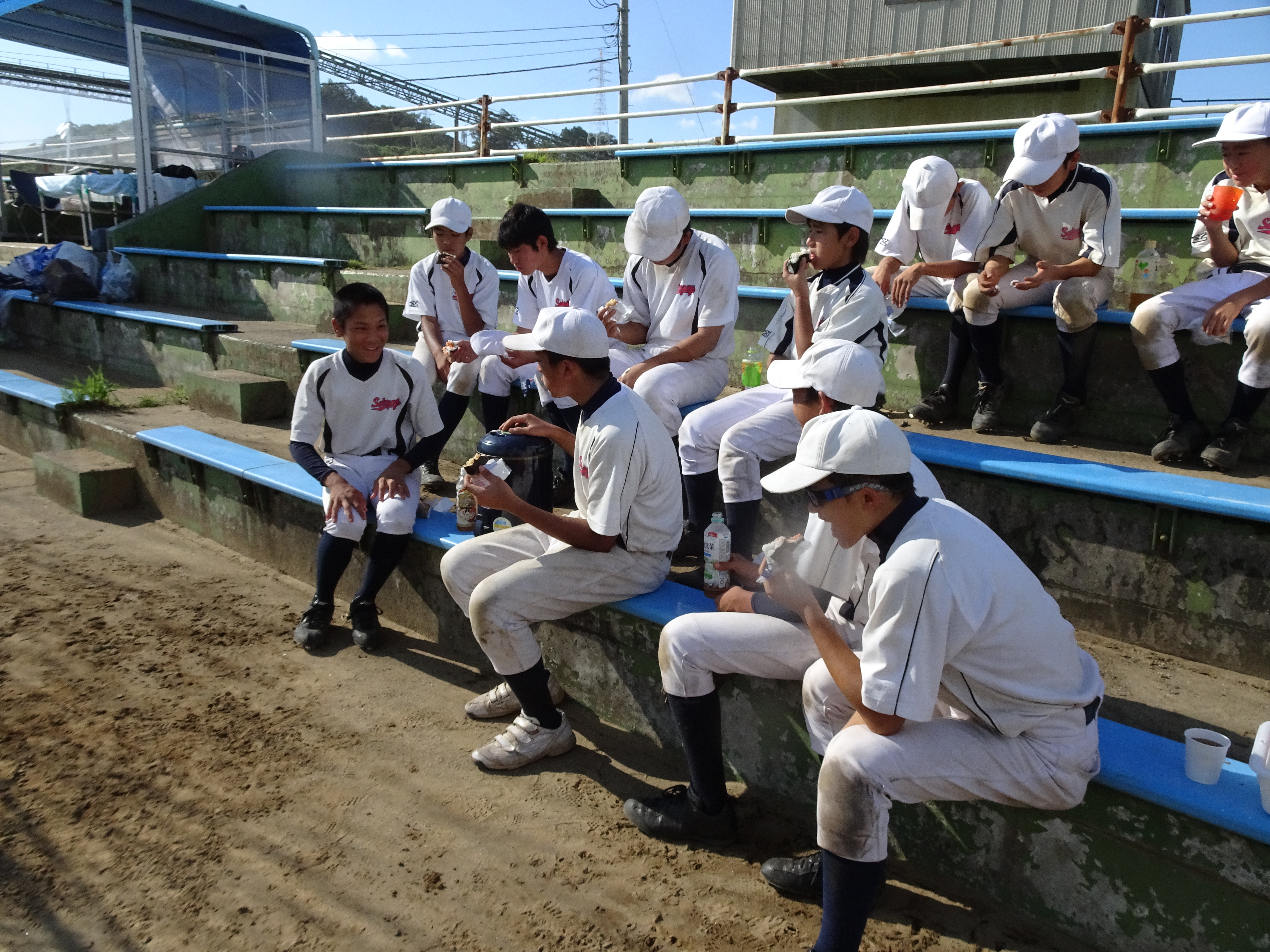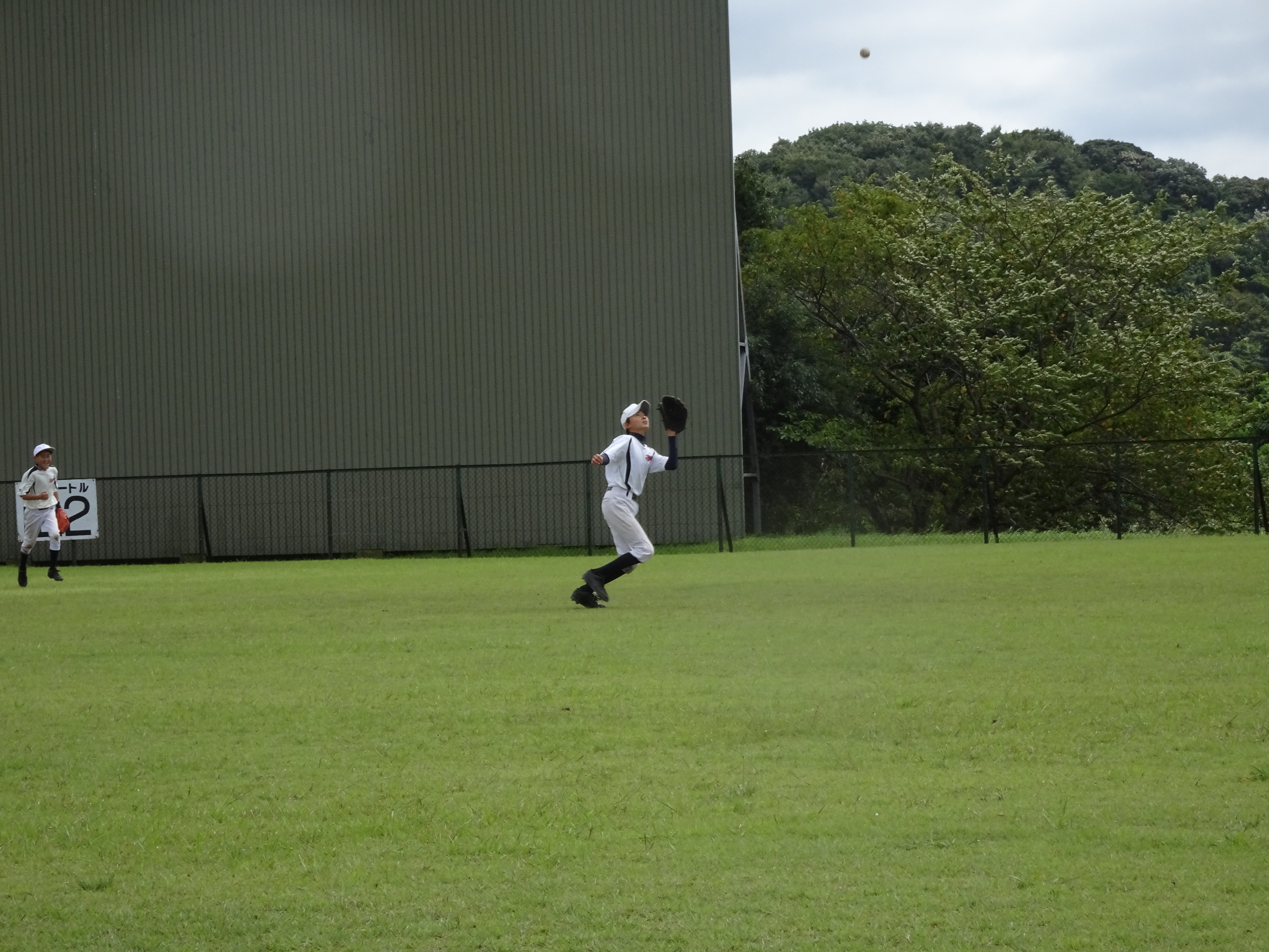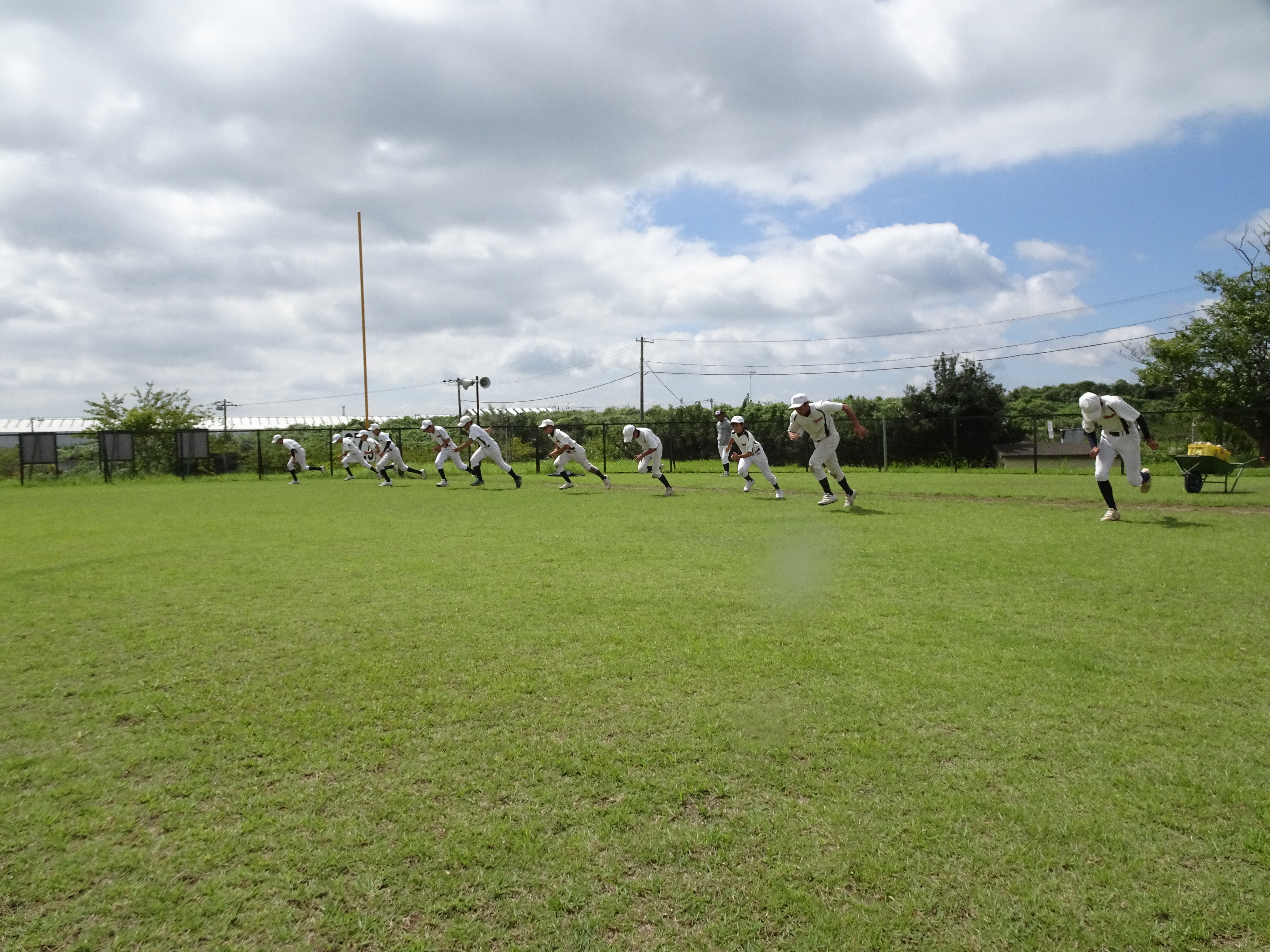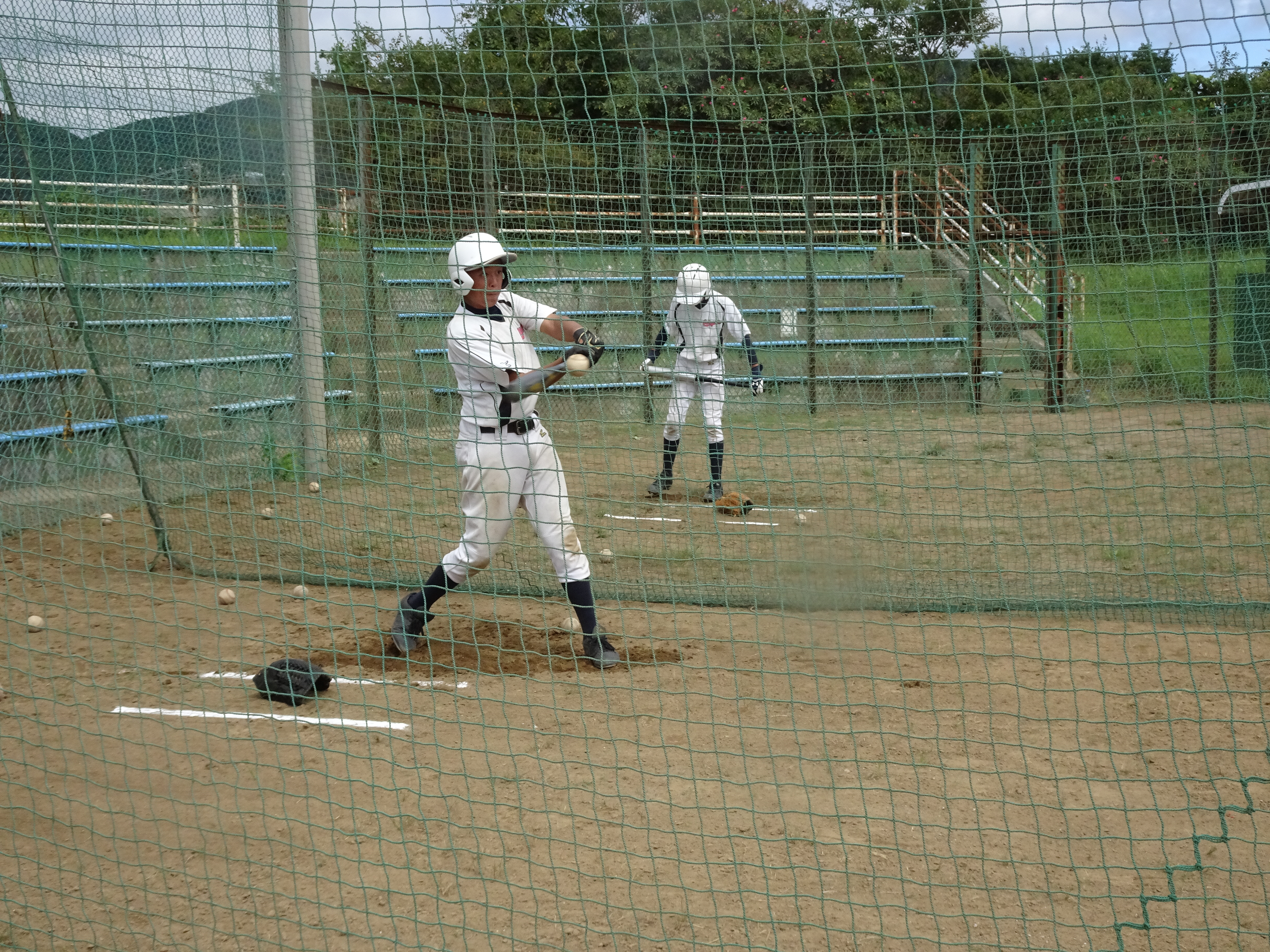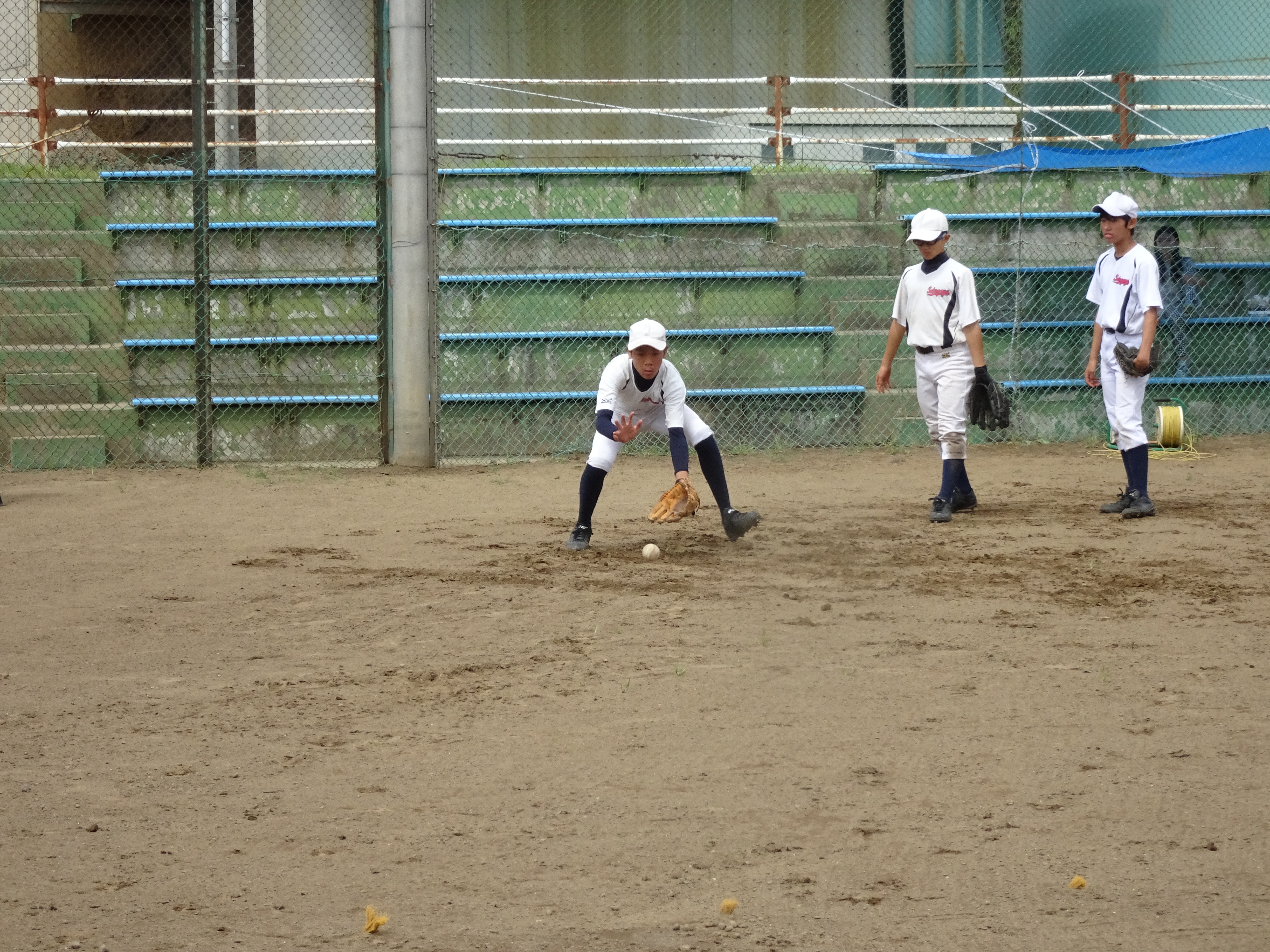 グラウンドが広いのはいいですね。3班にわかれて、バッティング、内野守備、外野守備を順番にこなしました。1班3、4人なのでみっちり練習!