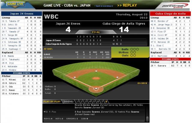 日本は3点を追う三回、石川、渡辺の連続長打と日高の遊ゴロで2点。四回は世田谷ボーイズOB山崎錬の2試合連続ソロで追いついた。その裏、キューバは打者一巡の攻撃で6点。日本は七回、石川のソロで1点を返したが、七、八回もキューバの長打攻勢に遭いコールド負けした。