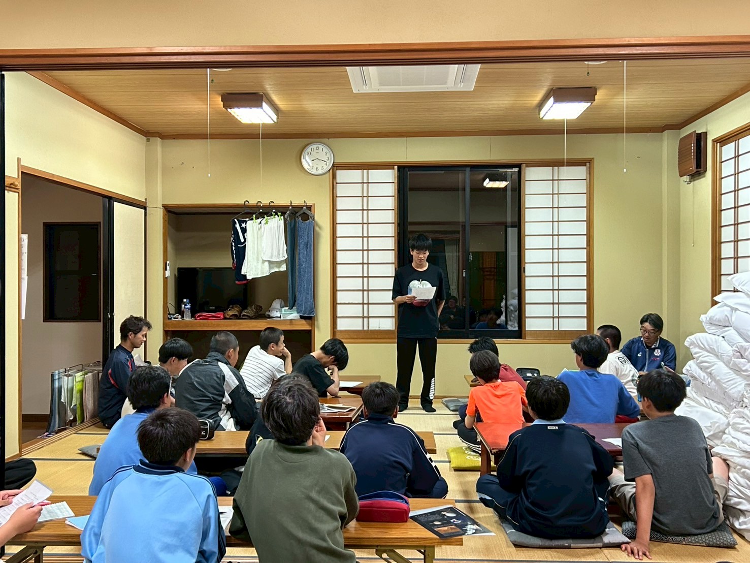 宿泊施設では、選手一人ひとりが1分間のプレゼンテーションに挑戦し、自己表現力や傾聴力を養いました。それぞれの個性あふれる発表は、互いを理解し、尊重する良い機会となりました。また、整理・整頓・清掃・清潔・躾の徹底を通して、自主性と規律意識を高めることができました。